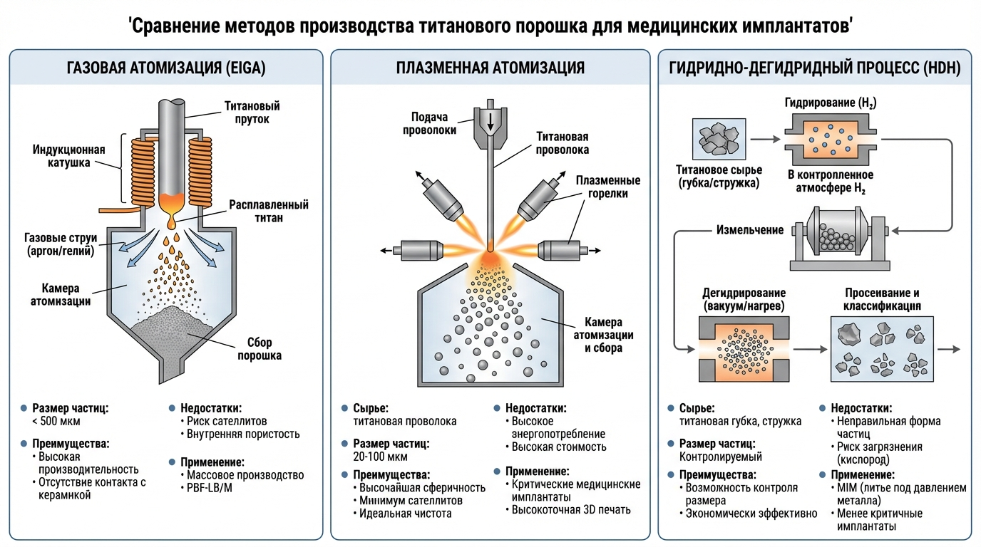 Качество титанового порошка напрямую определяет эксплуатационные характеристики готового имплантата. Для аддитивного производства требуются частицы строго сферической формы с минимальным содержанием примесей и узким гранулометрическим распределением.